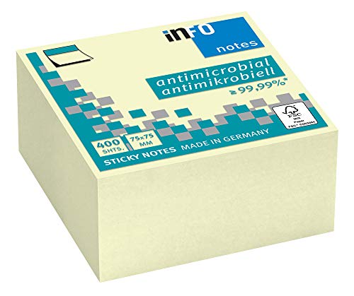 inFO Notes Kub med självhäftande lappar med antimikrobiell/antibakteriell utrustning, gul pastell 75 x 75 mm, 400 ark per kub, FSC-certifierad