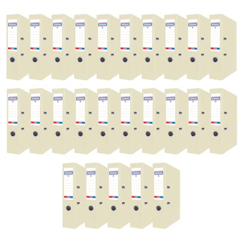 DONAU Premium 25-pack mapp A4/75 mm/7,5 cm/gul pastell plastskydd PP/papper/spårmapp kontorsmapp mapp metall kantskydd/perfekt för kontor och skola/grön punkt