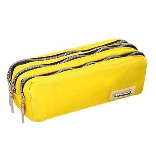 Skolväska lederrektangulärt pennfodral 3 fickor pastell gul 185x55x70 mm