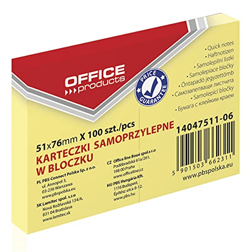 Officiella produkter 14047511-06 självhäftande anteckning 51 x 76 mm, 1 x 100 ark, pastellfärg/kanariegul