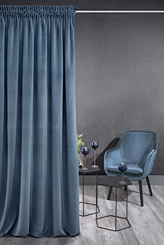 Eurofirany KRISTI gardin i sammet, mjukt veckband – 1 st. Dick 330 g/m² ädel elegant slät enfärgad fluffig modern klassisk pastellfärg vardagsrum sovrum, ljusblå