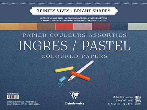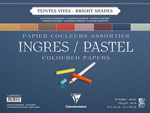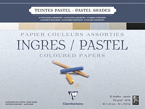 Clairefontaine Ingres pastellfärg lim, 130 g, 24 x 30 cm, 25 ark - blandade pastellfärger