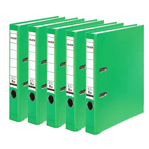 Original Falken 5-Pack PP-Color Plastmappar. Made in Germany. 5 cm smal DIN A4 pastellfärg ljusgrön vegansk. Perfekt för kontoret och hemmet. brevmapp kontorsmapp plastmapp slitsad mapp ringpärm