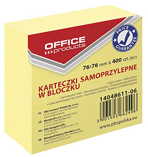 Office-produkter 14048611-06 självhäftande anteckningsblock 76 x 76 mm, 1 x 400 ark, pastellfärg/kanariegul