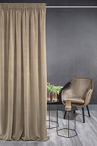 Eurofirany KRISTI gardin i sammet, mjukt veckband – 1 st. Dick 330 g/m² ädel elegant slät enfärgad fluffig modern klassisk pastellfärg vardagsrum sovrum, ljusbrun