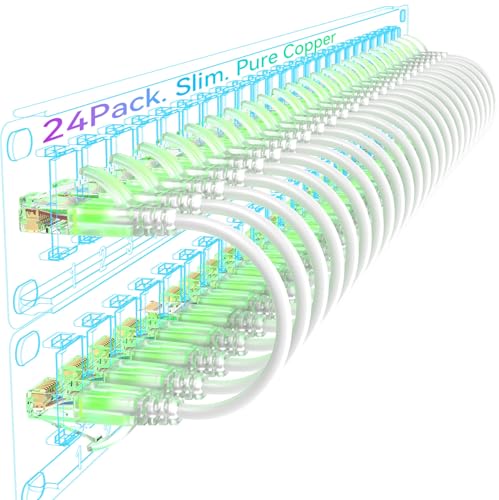 Sokqovt Cat6a patchkablar slim 24-pack), flexibel Cat6 Ethernet patchkabel 10G 550 MHZ, 28 AWG ren koppar Cat6 patchkabel för nätverksskåp, katt 6 patchkabel vit