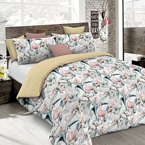 Fashion Påslakan Set Mikrofiber, Bearbetat i Italien - Täckeöverdrag - Täckeöverdrag 200x200 cm med Patella och Örngott Kudde, Halvkvadrat, Tropiskt