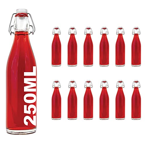 slkfactory Flaskor med patentkork, patentkorksflaska, glasflaska med patentkork, bygelkork, flaska, snaps-flaska, vinflaska, 12 stycken 250 ml, nr. 200 ml