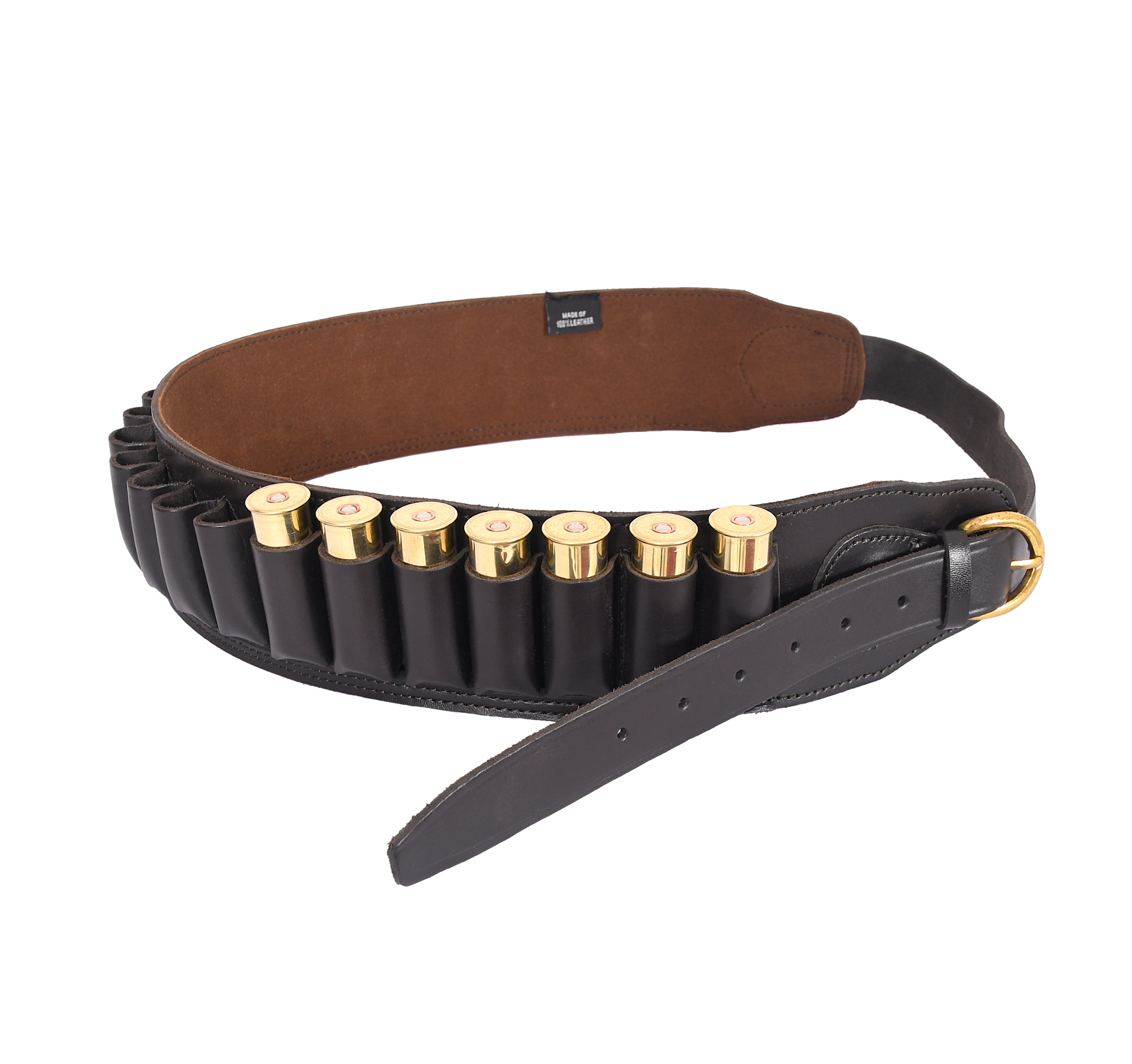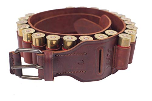 VlaMiTex Patronbälte Hagel, Kaliber 12, äkta Läder, svart/brun (Brun J7 - M Midja 87-107 cm)