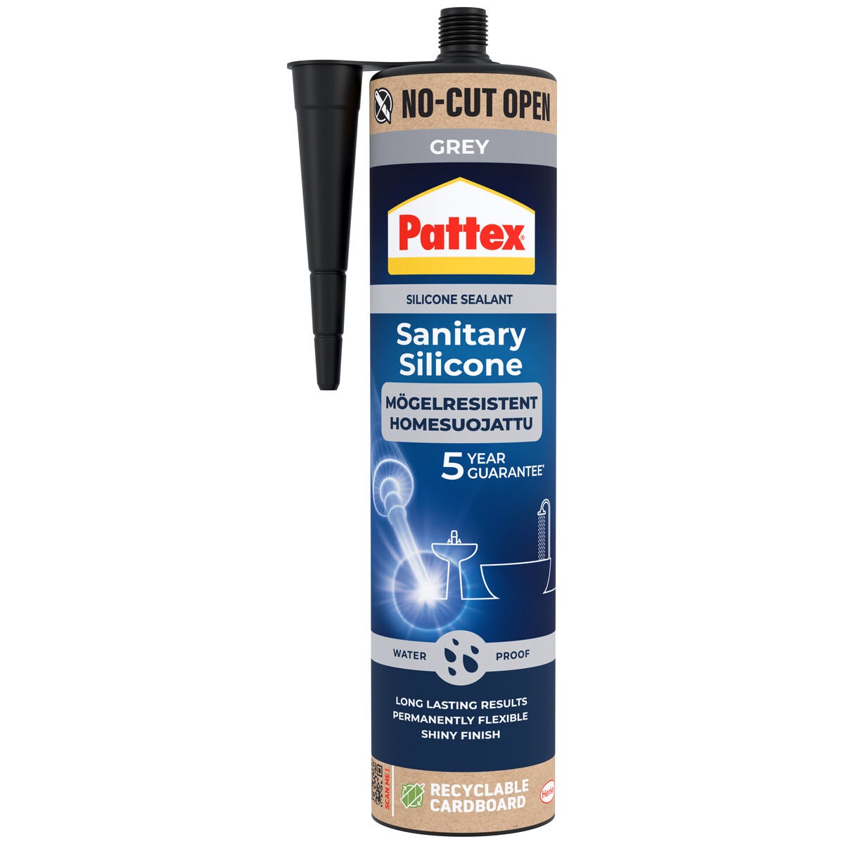 Pattex AC 401 Flexo Pac akryl silikon tätningsmedel, för kopplingar och sprickor, fönsterbrädor, dörrar, golvlister, Indore, inomhus- och utomhusförseglingar, grå tätningsmedel, 300 ml patron