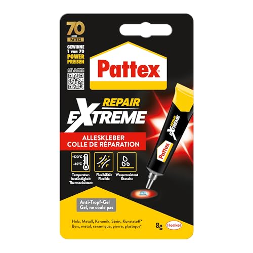 Pattex Repair Extreme, icke-krympande och flexibelt universallim, temperaturbeständigt reparationslim, starkt lim för inomhus- och utomhusbruk, 1 x 8 g rör