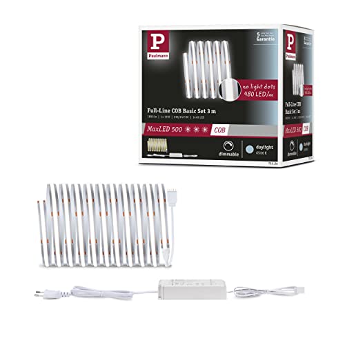 Paulmann 71124 MaxLED 500 LED Strip Full-Line COB 19 W 600 lm/m 480 LED/m Dimbar 3 m Silver Plast 6500K LED-band Utbyggbar