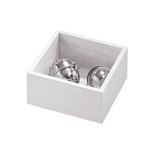iDesign EcoWood lådorganisatör, Paulownia trä kökslåda förvaringsinsats, kökslåda organiserare för bestick och redskap, vit tvätt, 12,7 x 12,7 x 7 cm