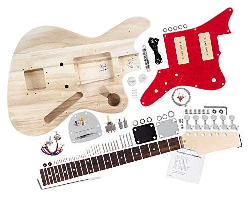 DIY Rocktile JAG elektrisk gitarrsats - JAG-stil "Gör själv" kit - kropp: Paulownia - handtag: Skruvlönn - knapp: Blackwood