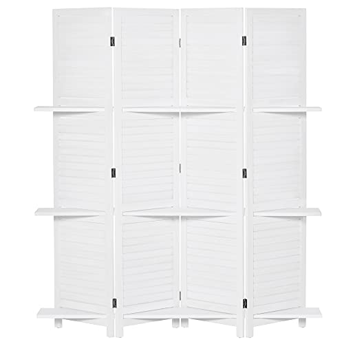 HOMCOM interiör 4 paneler 3 hyllor vikbara rumsavdelare dörr Paulownia trä vit