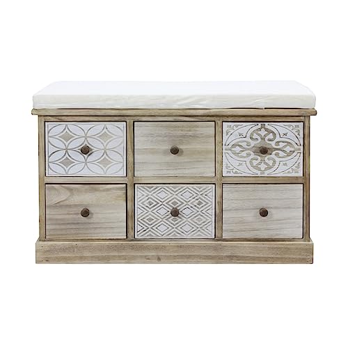 Rebecca Mobili Inomhusbänk, Badrumsbänk, Paulownia Wood, Beige White, Shabby Style, Vadderad sits, Entré - Mått: 49 x 77,5 x 35 cm (HxBxD) - Art. RE6538
