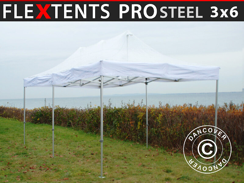 Dancover Snabbtält Depåtält Easy-up tält Eventtält Partytält FleXtents PRO Steel 3x3m Vit, Flammhämmande