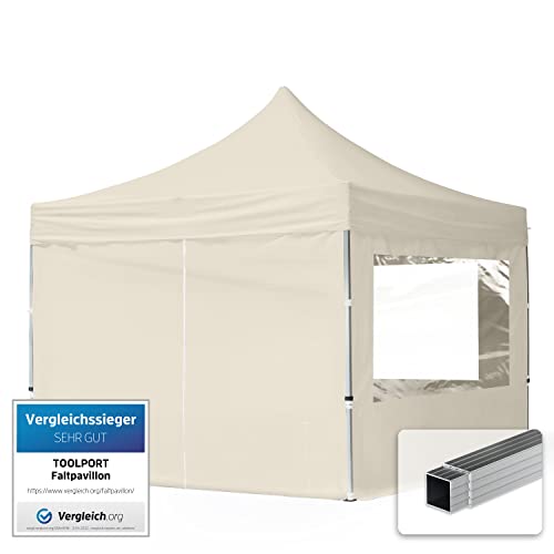 pop-up tält snabbtält 3x3 m - 4 sidodelar hopfällbart tält aluminium paviljong (certifierad) party lusthus crème tak