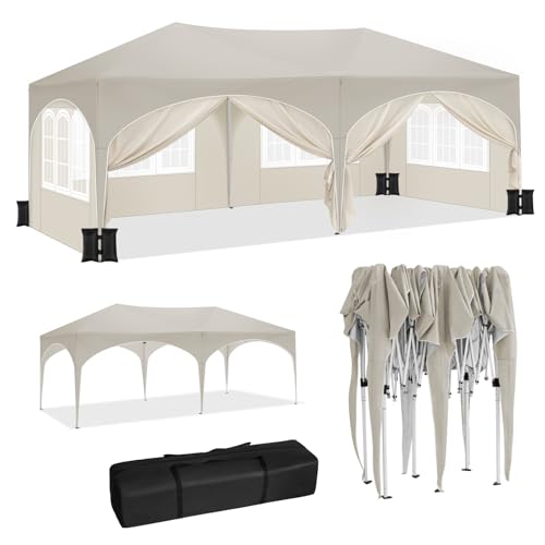 Laneetal Paviljong 3 x 6 m, Pop Up hopfällbar paviljong, 6 sidoväggar med fönster dragkedjor, trädgårdspaviljong, vattentät vintersäkert UV-skydd, för trädgård, camping, strand, grill, beige