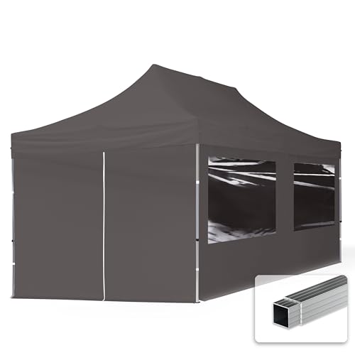 pop-up tält snabbtält 3x6 m - 4 sidodelar hopfällbart tält aluminium paviljong (certifierad) party lusthus grå tak