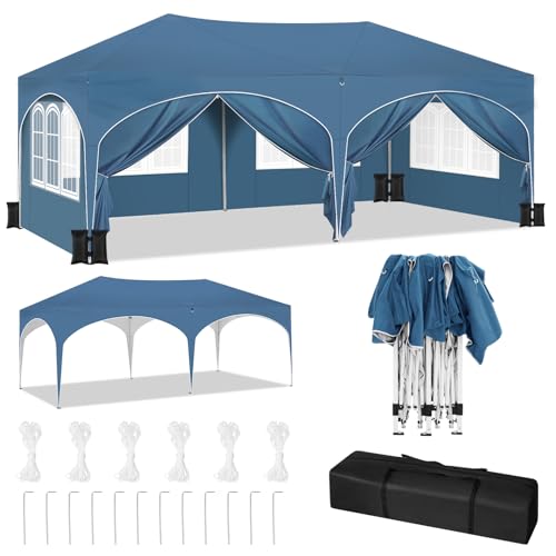 WOLTU Partytält med 6 sidodelar och 4 sandsäckar, vikbar paviljong, 3 x 6 m, med halvmånetak, trädgårdspaviljong, stabilt UV-skydd, popup festtält utomhus, höjdjusterbar, med bärväska, blå