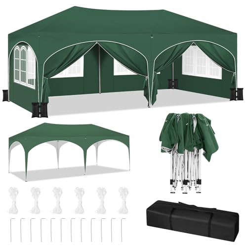 WOLTU Partytält med 6 sidodelar och 4 sandsäckar, vikbar paviljong, 3 x 6 m, med halvmånetak, trädgårdspaviljong, stabilt UV-skydd, popup festtält utomhus, höjdjusterbar, med bärväska, grön