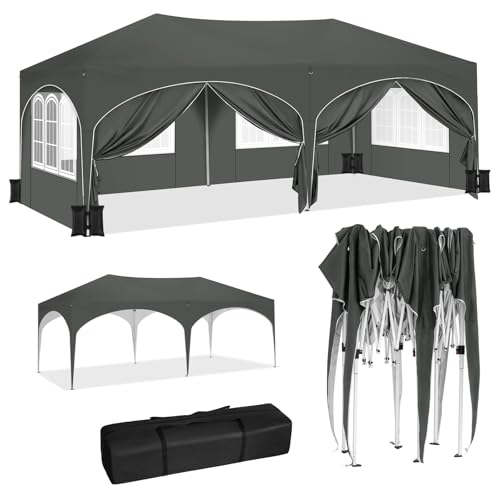 WOLTU Partytält med 6 sidodelar och 4 sandsäckar, vikbar paviljong, 3 x 6 m, med halvmånetak, trädgårdspaviljong, stabilt UV-skydd, popup festtält utomhus, höjdjusterbar, med bärväska, grå