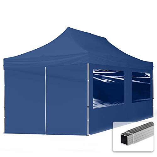 pop-up tält snabbtält 3x6 m - 4 sidodelar hopfällbart tält aluminium paviljong (certifierad) party lusthus blå tak