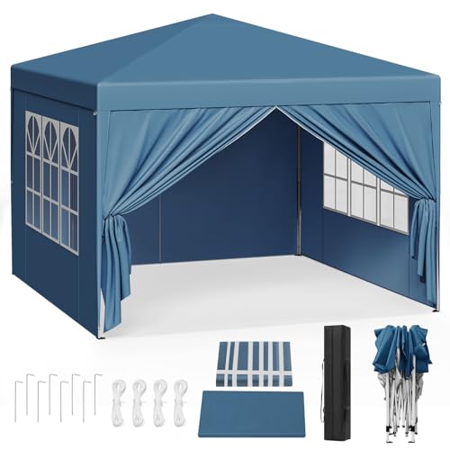 WOLTU Popup-paviljong, vattentät hopfällbar paviljong, solskydd för evenemang, paviljong med sidoväggar, trädgårdspaviljong på terrass, camping, festival, pagodtält av oxfordtyg med metallram, 3 x 3 m