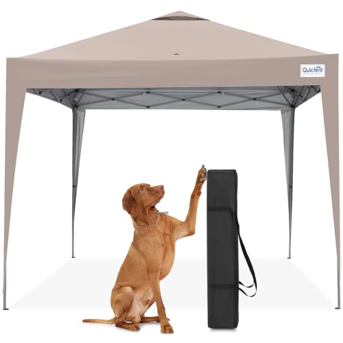 Quictent paviljong 3 x 3 m vattentät hopfällbar paviljong stabil vintersäker, popup klicksystem, UV-skydd 50+, trädgårdstält, festtält, beige