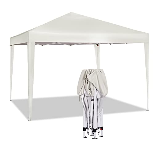 Wiltec Pop Up Paviljong Vit 3x3m hopfällbar med Sidovägg One Push Tält med Hjul för Trädgård