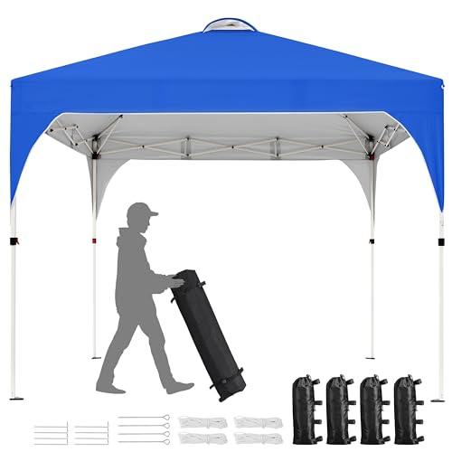 Wiltec Blå Pop Up Paviljong Hopfällbar med Hjul 3 x 3 m One Push Tält för Trädgård med UV-Skydd