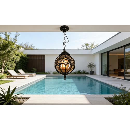 Chao Zan Retro svart hängande utomhu - runda hängande utomhuslampor - 1 x E27 - vattentät IP55 - matsal balkong dekorativ paviljong korridor antik hänge utomhus hängande lampor 18 x 27 cm