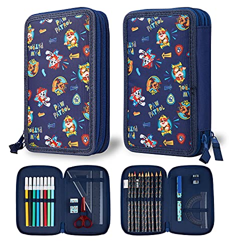 Paw Patrol Pennor med pappersuppsättning Marshall Chase Rubble Filled Pencil -fodral Multipla dragkedja av fack Skol Stationery Set gåvor till barn, En storlek, Navy dubbel zip