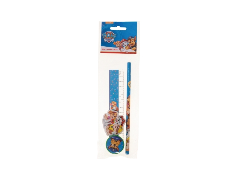 Paw Patrol Stationär Set - 1 Triangulär Ospetsad Blyertspenna, 1 Linjal 15 Cm, 1 Formad Suddgummi, 1 Rund Pennvässare, Packad I Polybag Med Toppkort.