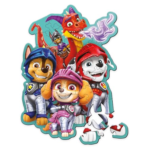 Trefl – Träpussel: PAW Patrol, Äventyr med Hundpatrullen - 50 bitar, Formpussel Wooden Puzzle, Oregelbundna pusselbitar, 10 figurer, för barn från 5 år