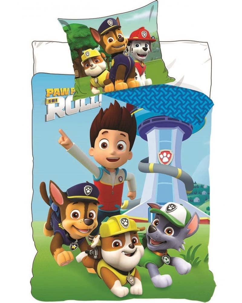 Paw Patrol junior sengetøy 100x140 cm - Paw Patrol Is on a roll - Vendbart design - 100% bomull