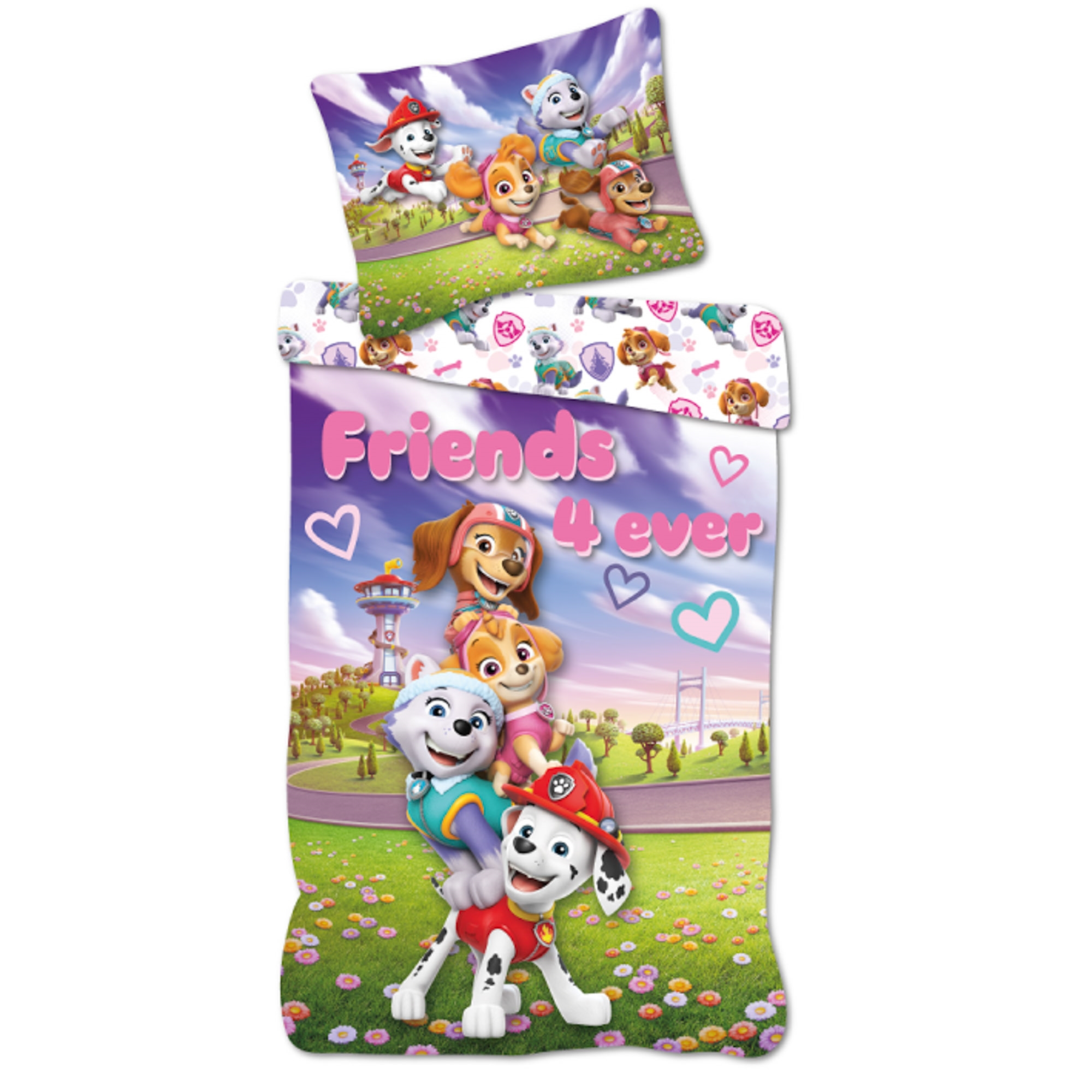 Paw Patrol sängkläder 140x200 cm - Vändbart påslakanset med Paw Patrol - Friends 4 ever - 100% bomullssängkläder