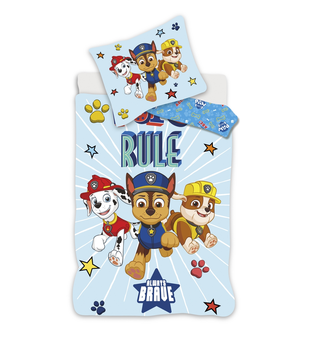 Aymax Vändbar Paw Patrol sängkläder, påslakan 140 x 200 cm + örngott 65 x 65 cm, polybomull, med Chase, Marcus, Ruben och Stella