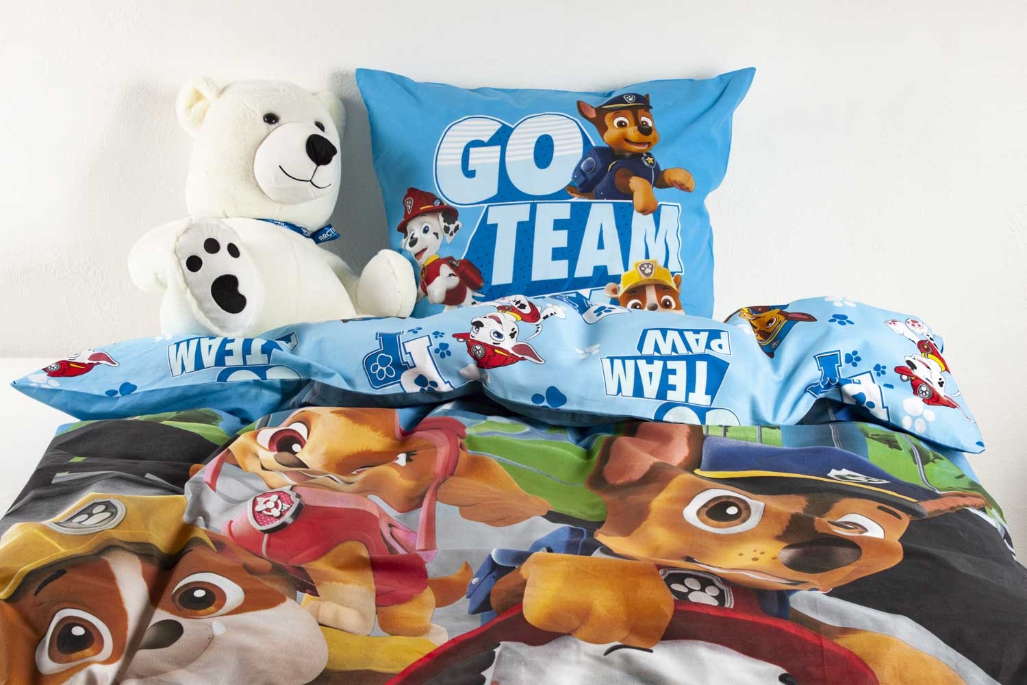 Paw Patrol sängkläder 140x200 cm - Go Team Paw - 2 i 1 påslakanset - Påslakan i 100% bomull