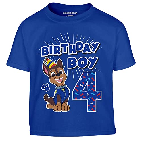 Paw Patrol – födelsedag 4 år födelsedag pojke barn pojkar t-shirt, blå, 116 cm