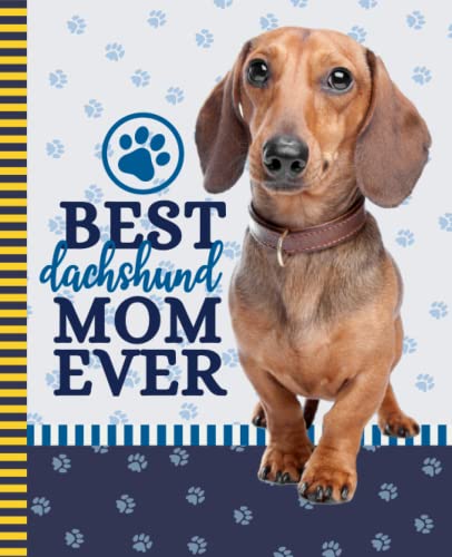 Best Dachshund Mom Ever: 7.5 x 9.25 / Brown Dog Composition Notebook Wide Ruled / 108 Pages / Stationery Gift for Note Taking / Paw Print Pattern Funny Quote Cover