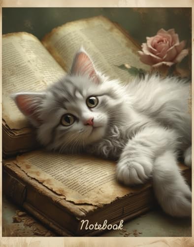 Notebook: Victorian Kitten Purr-fect journal for collecting thoughts, gratitude, affirmations, ideas. |140 pages 8.25" H x 6.50" W. Back cover black ... faint small paw print on bottom right corner.
