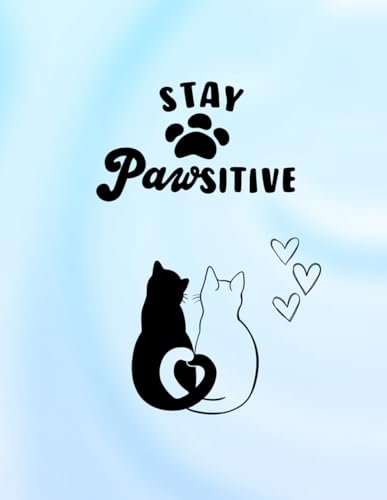 Cat paw notebook, Stay Pawsitive, 80 lined pages with heart and paw print: Cat paws print on the back of the notebook cover