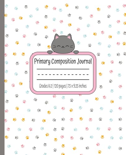 Cat Primary Composition Journal: Cute Kitten Paw Print Drawing and handwriting practice sheets with dotted midline, Perfect Creative Story Notebook ... 120 Pages, 7.5 x 9.25inches. Darling Diary