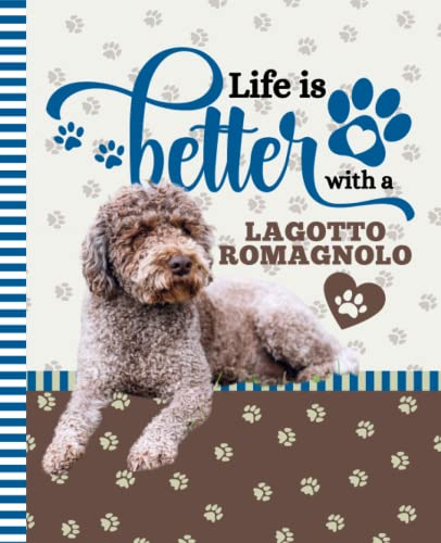 Life Is Better With A Lagotto Romagnolo: 7.5 x 9.25 / Brown Dog Composition Notebook Wide Ruled / 108 Pages / Stationery Gift for Note Taking / Paw Print Pattern Funny Quote Cover