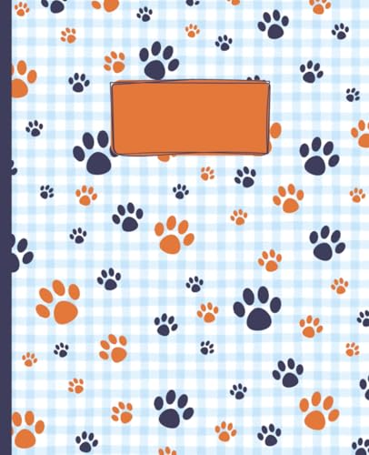 Composition Notebook: Blue & Orange Dog | paw print, 100 pages, wide ruled, 7.5 x 9.25, For kids, teens, adults