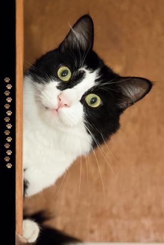 Cute Tuxedo Cat Journal Notebook: 120 Lined pages with paw print endpages, 6 x 9, for home, school, office supplies, diary, gift