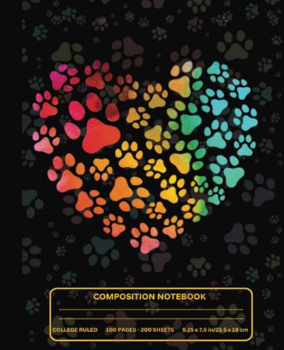 Composition Notebook College Ruled: Rainbow Paw Print Aesthetic Notebook for Adults, School, College, Work, Office, Kids | 7.5 x 9.25 Cute Writing ... lined Paper | Perfect Gift for Dog Lovers