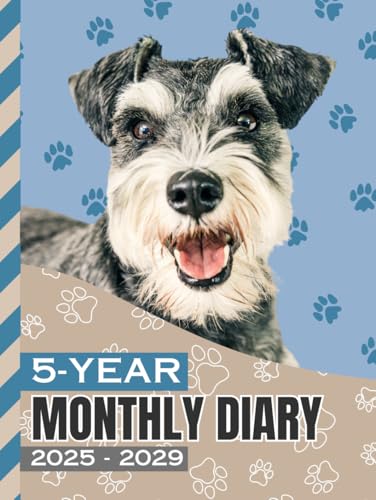 5-Year Monthly Diary 2025-2029: Hardcover / 8.5x11 Daily Dated Notebook / Goal Planning Journal With To Do Lists / Personal Event Organizer Gift / ... Schnauzer Dog Art on Paw Print Pattern Cover